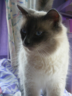Himmies are average sized cats but their dense bones and abundance of fur make them appear larger! They are stocky in build with thick legs and a short thick neck. Himalayans tend to weigh around 3.5 to 6 kg. Their head and eyes are large and round. The eyes are normally blue in colour but sometimes can be copper. Breeders tend to prefer breeding a more squashed flat face himmie nowadays but you may sometimes come across one with the traditional doll face.