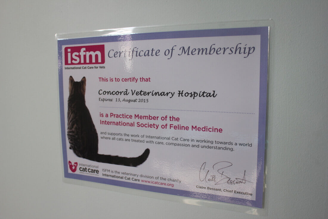 We are proud to announce that Concord Veterinary Hospital is now a Practice Member of the International Society of Feline Medicine (ISFM) and supports International Cat Care. We are also in the process of becoming an Accredited Cat Friendly Clinic – which means that our premises, procedures and practice staff meet the Cat Friendly Guidelines specified by the ISFM. We already provide what we believe to be excellent cat care, and through the accreditation scheme, we hope to improve even further! Dog lovers don’t worry – we also pride ourselves on excellent canine care too! |