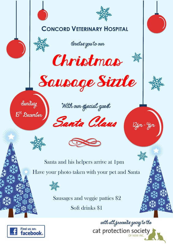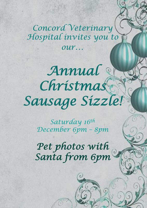 Concord Veterinary Hospital will be holding our annual Christmas Sausage Sizzle (vegetarians and vegans catered to!)
